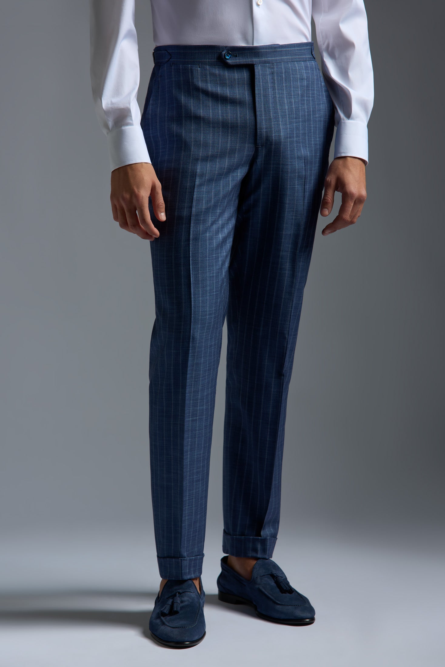 Our Sanita suit body draws inspiration from the romance of Italian tradition with its strong silhouette, classic fit and traditional lapel. But playful modern details introduce a casual sophistication that blurs the line between the old and new. We've given our Sanita body a soft, Neapolitan shoulder and high armhole to ensure all-day comfort while maintaining a clean, unruffled silhouette. Modern flourishes like its trimmer chest silhouette and raised button stance are blanced by traditional details like a longer length, side vents and full canvas construction. To complement this tailored silhouette, we've paired the jacket with a Sanita trouser. Designed for the contemporary gentleman, the Sanita has a medium rise of 22 cm, a somewhat tapered leg and an ankle circumference of 19 cm. Inspiration for our Sanita silhouette comes from the Rione Sanita district in the heart of old Naples. Once located outside the ancient walls of the city, the neighborhood became synonymous with the wildness and unpredictability of the multitudes of peoples, races, cultures and customs that congregated there over the ages. Later a creative hub and the birthplace of our beloved artist Toto, Rione Sanita is still bursting with the contradictions, passions and creativity of the Neapolitan spirit.