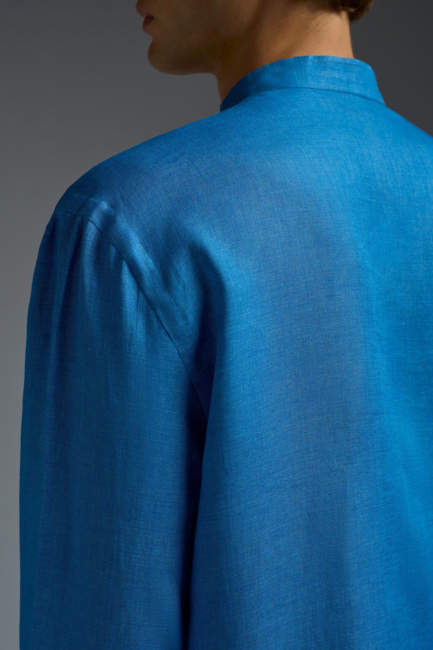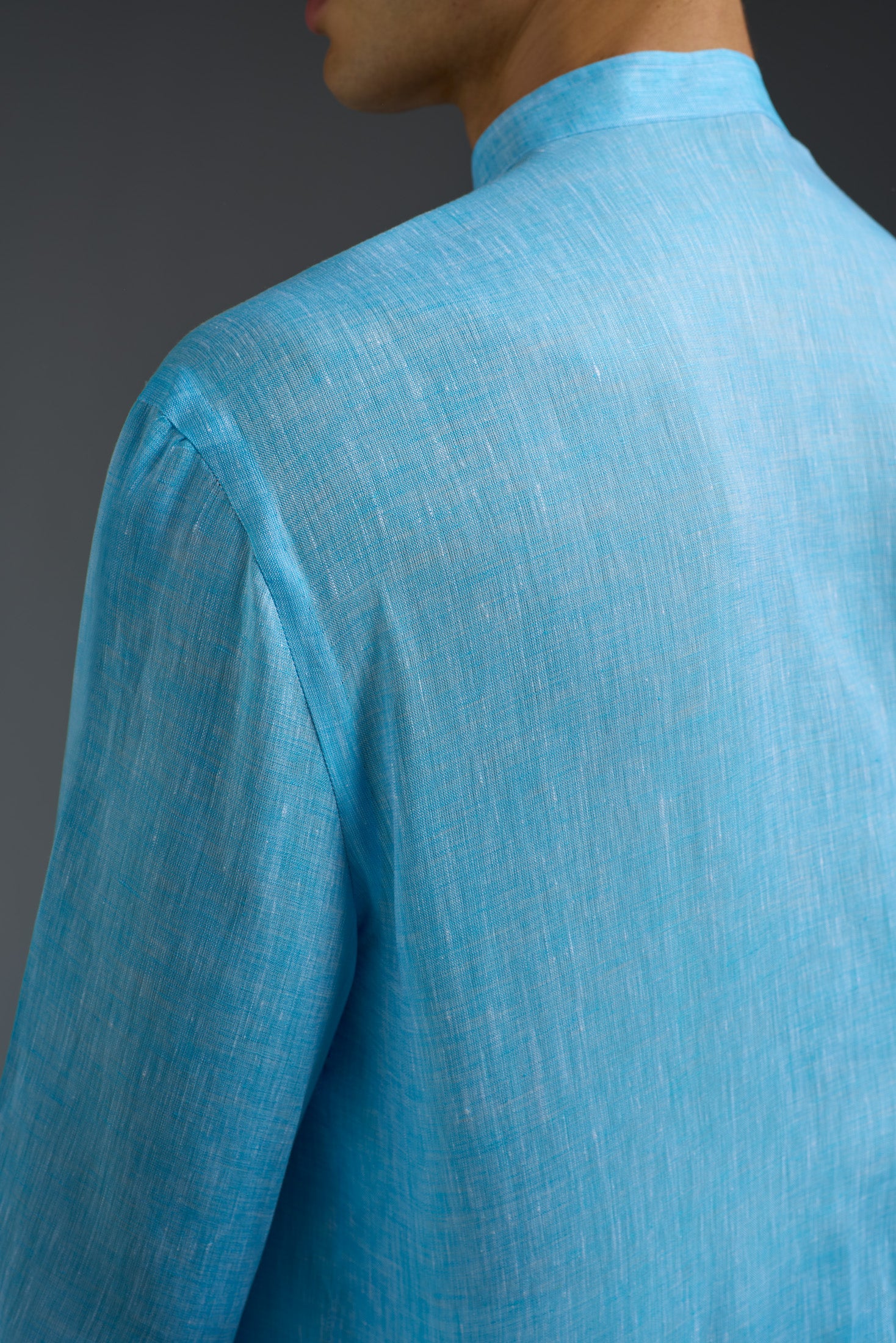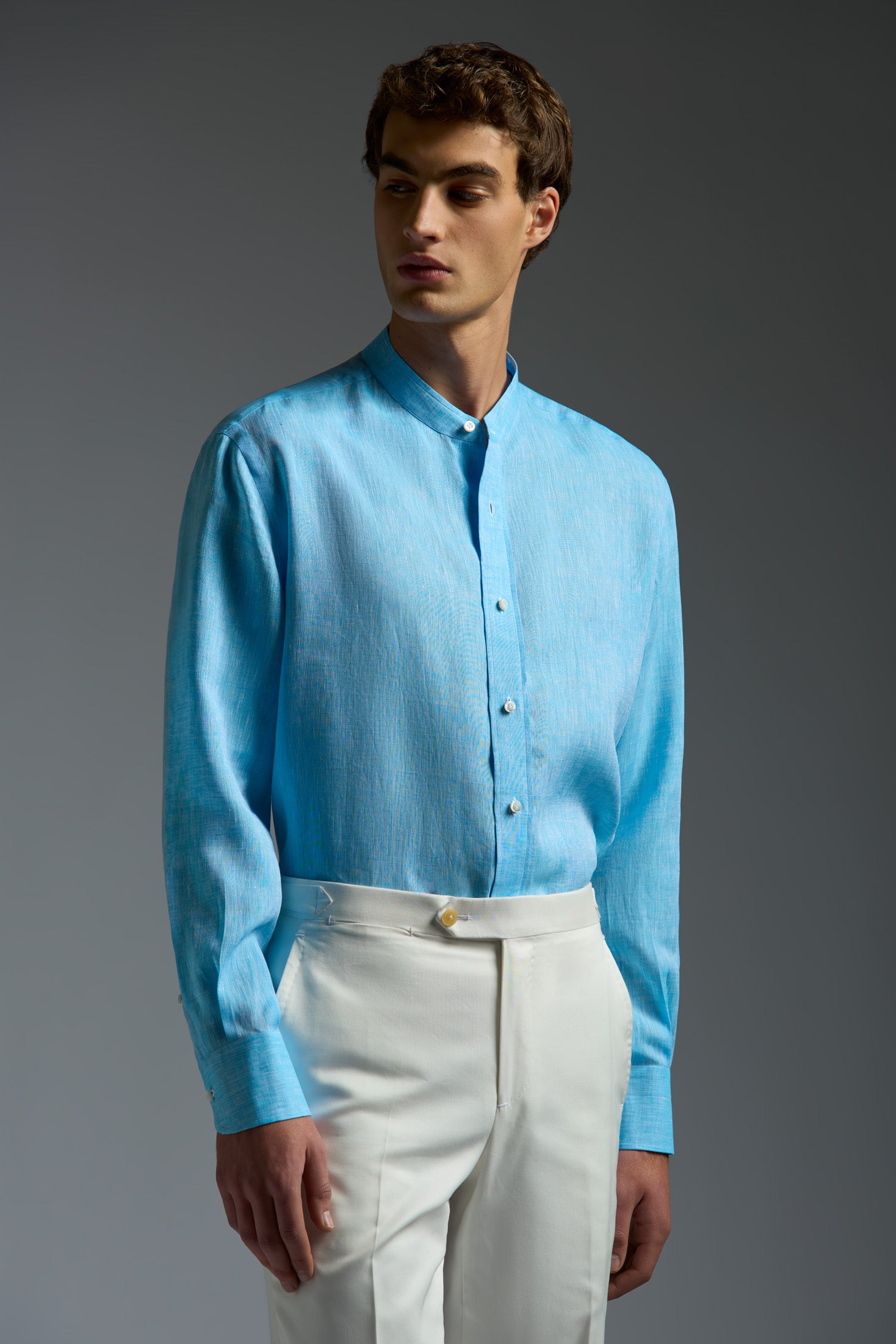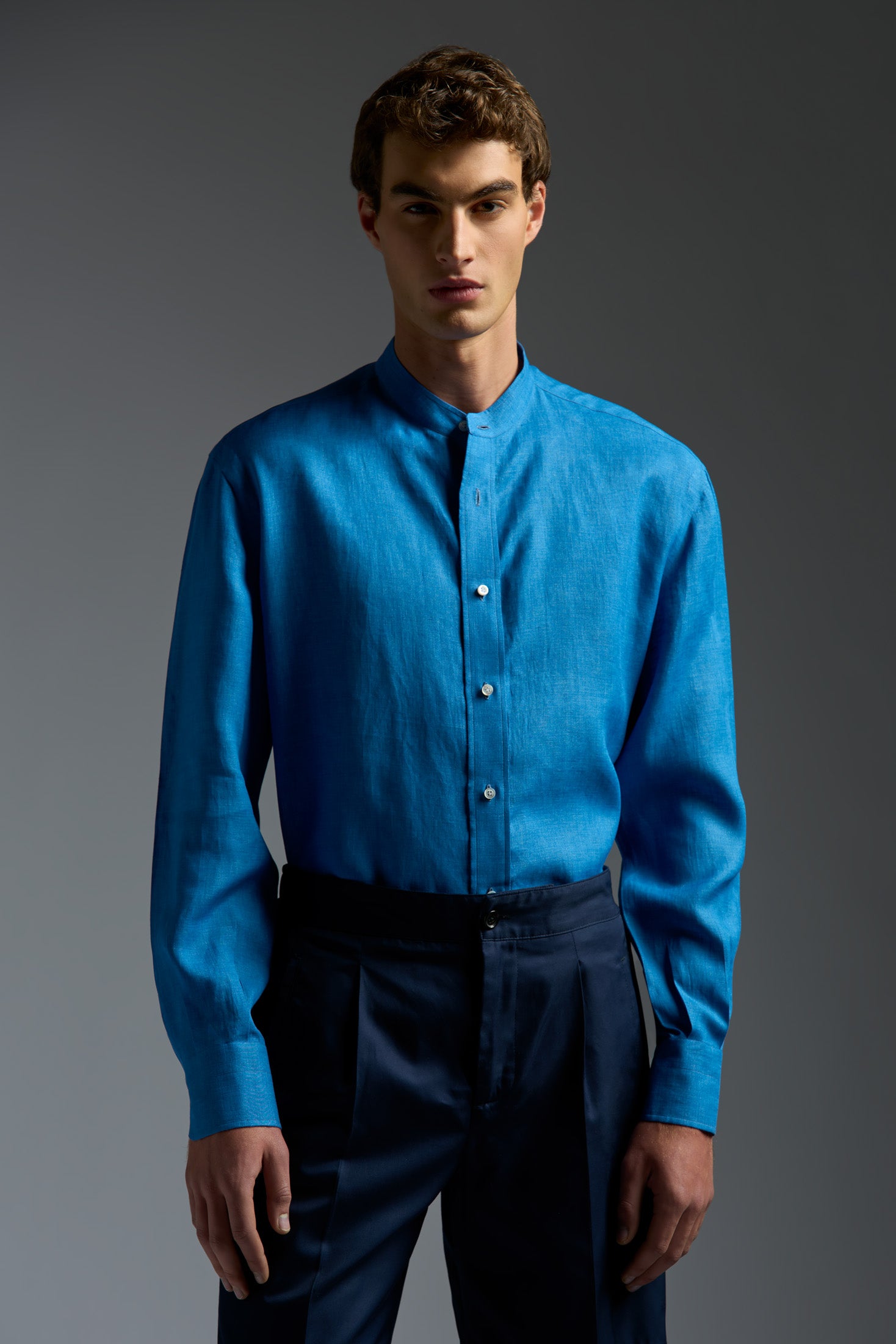 Linen Band Collar Long Sleeves Shirt
