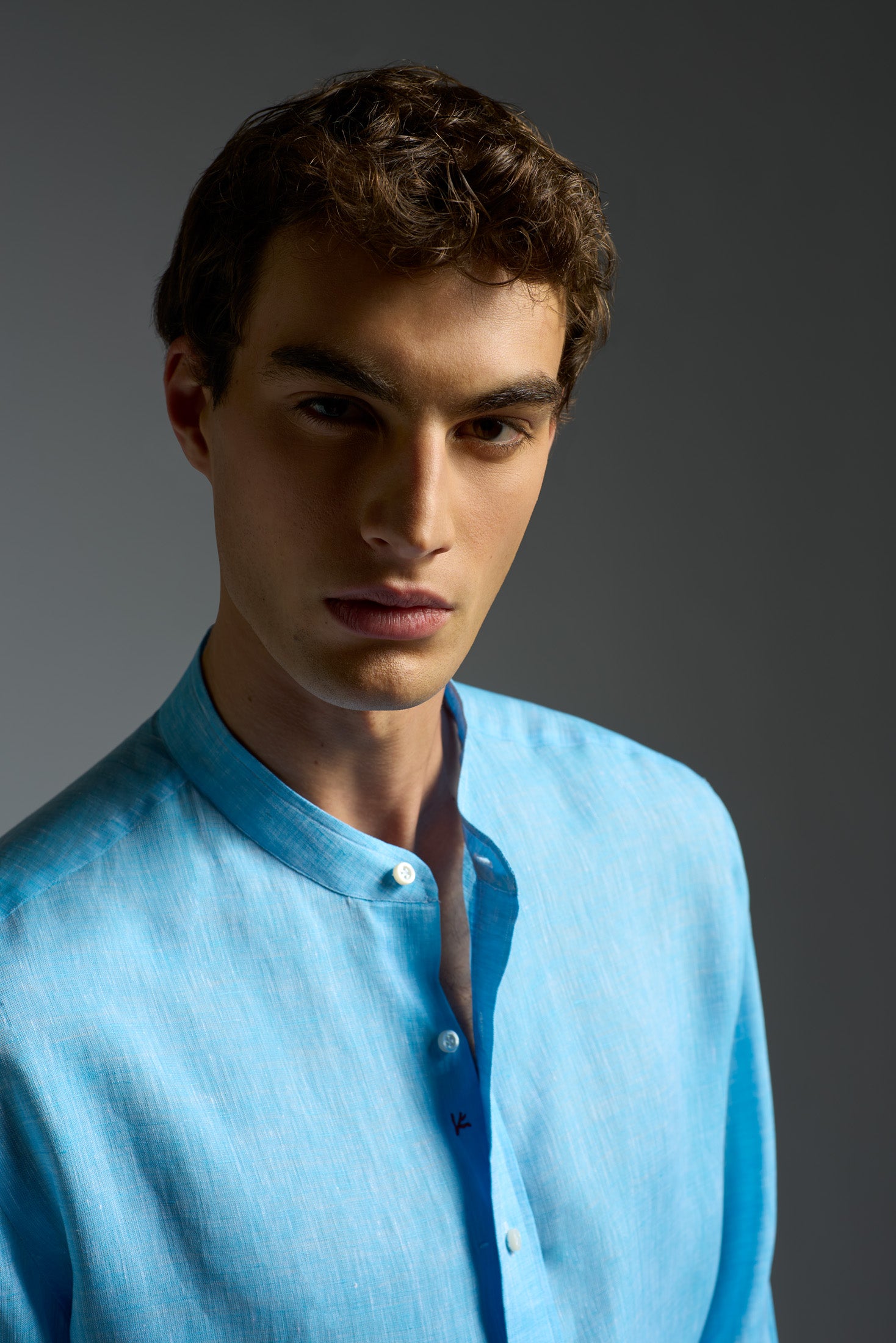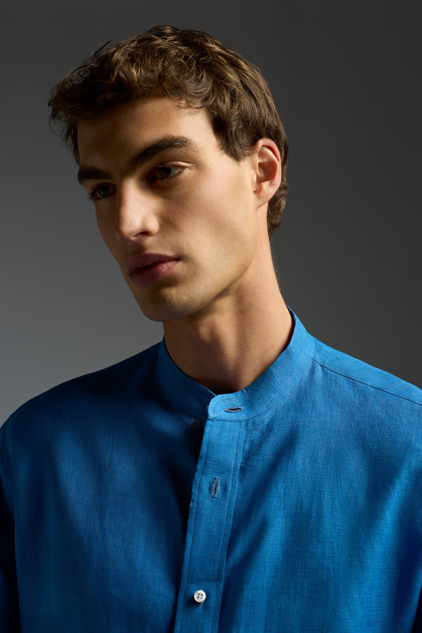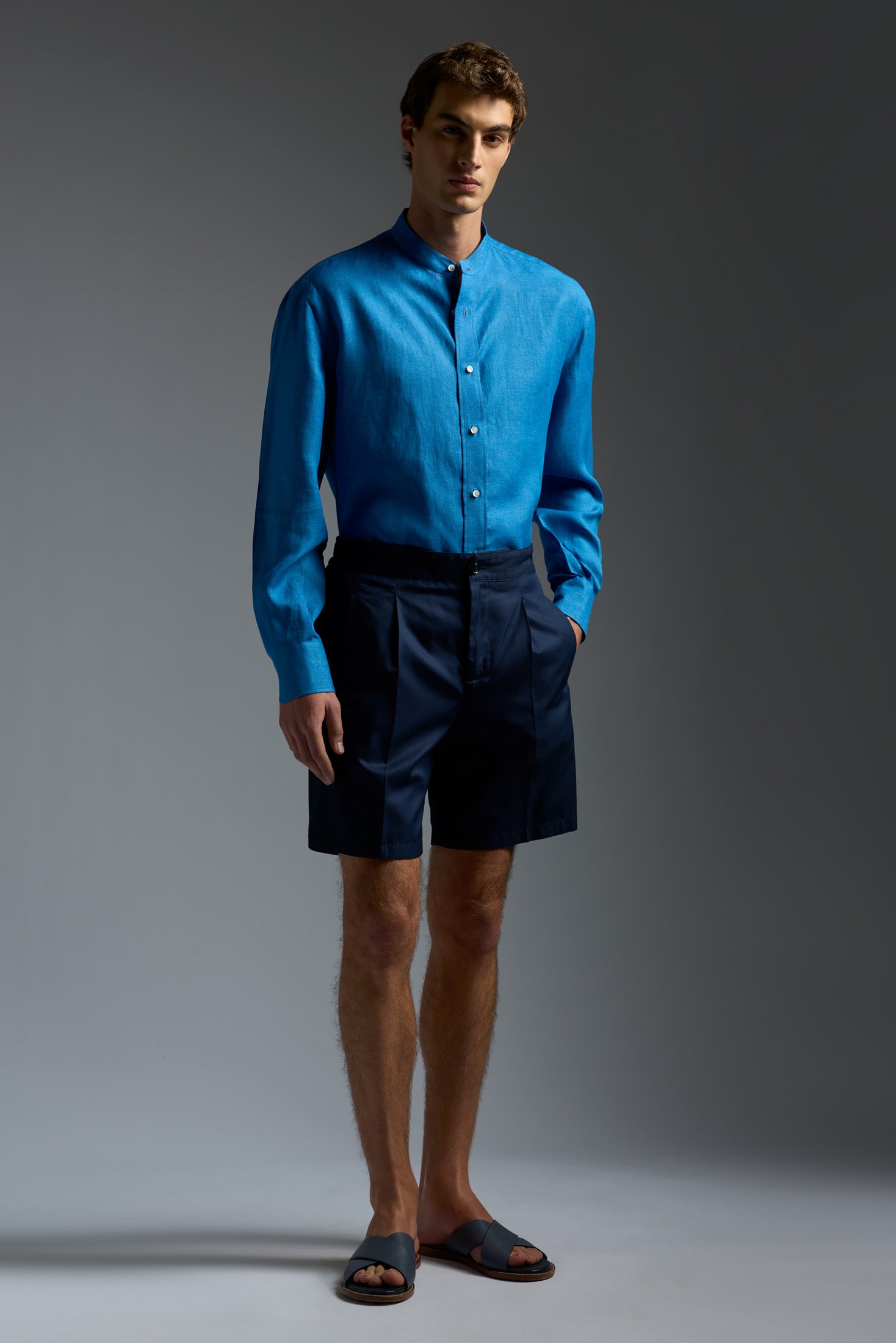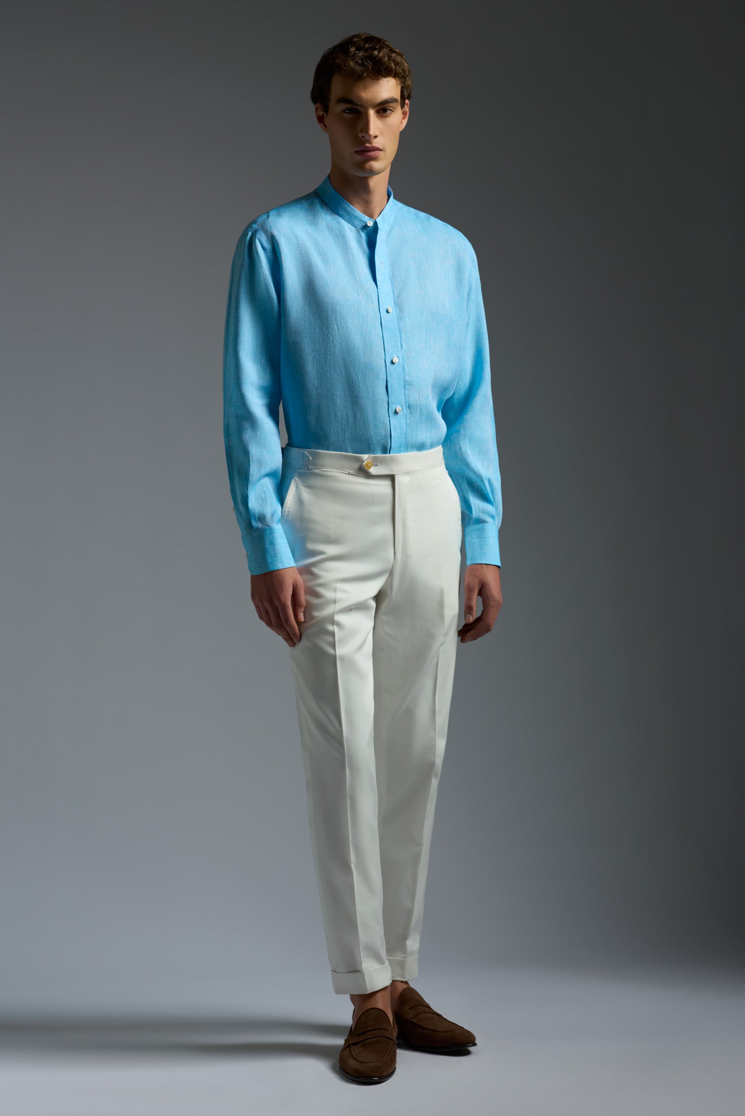 Linen Band Collar Long Sleeves Shirt