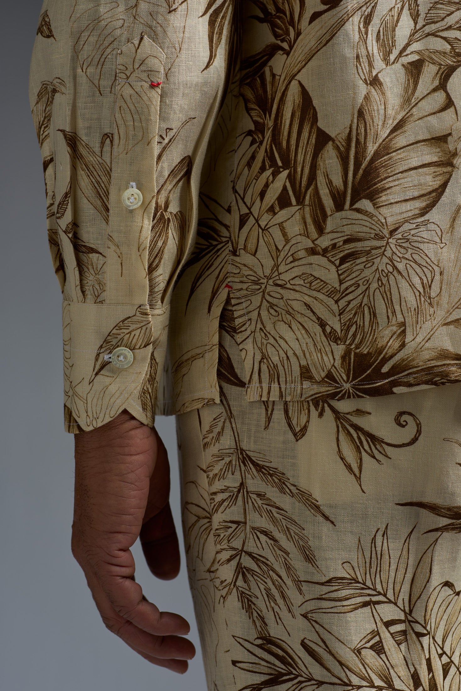 Vegetation Printed Linen Camp Collar Long Sleeves Shirt