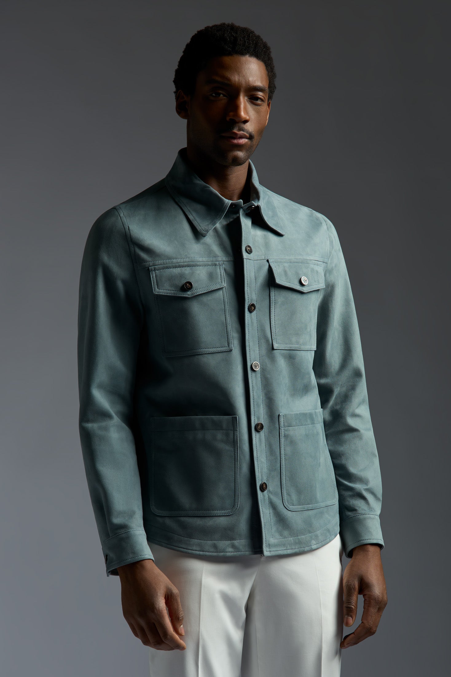 Aqua Suede Double Overshirt