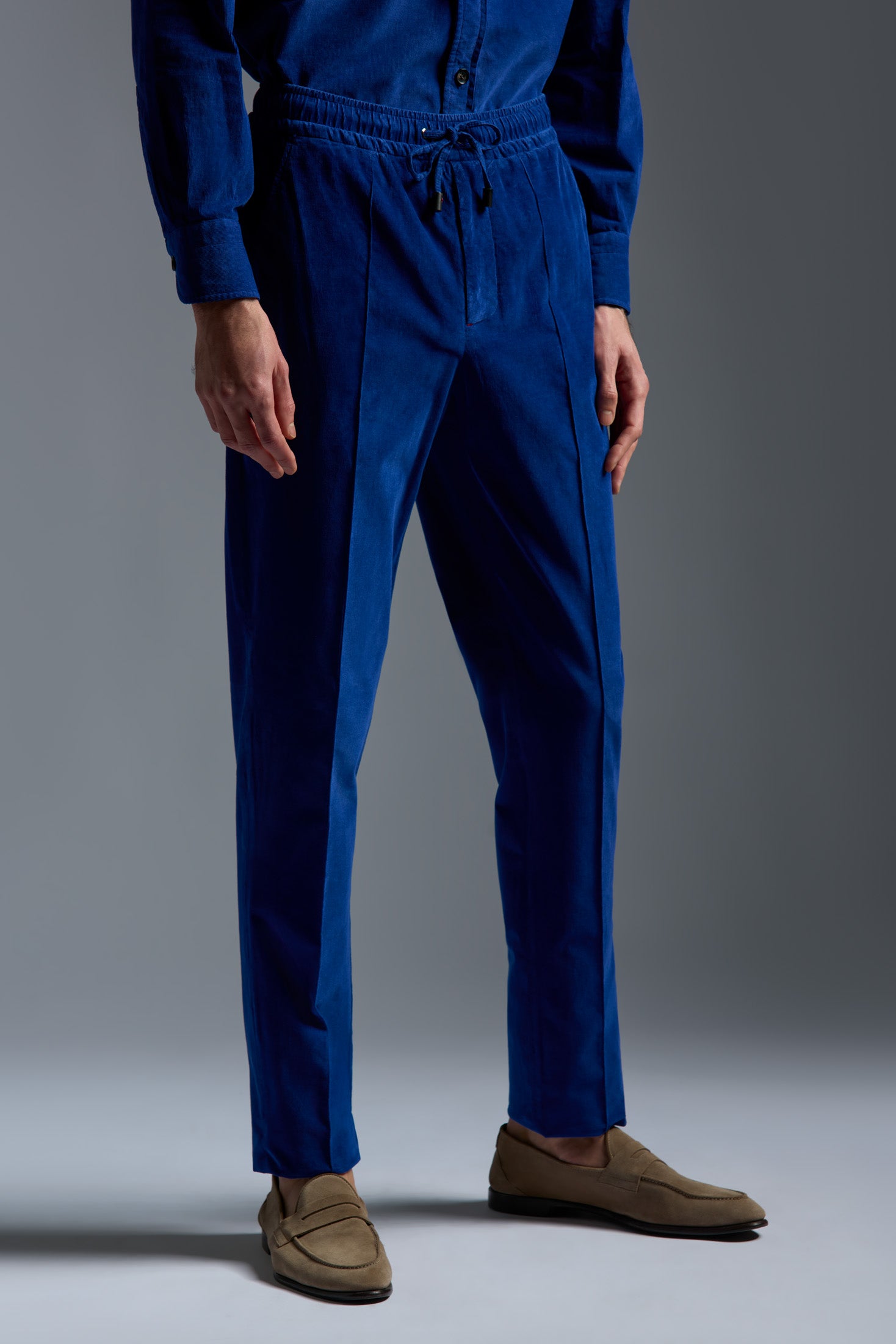 Our Drawstring trouser is designed to refocus the plurality of urban life into a simple, elegant silhouette. It's a smart look steeped in the Neapolitan tradition, with a medium rise, room-to-move fit and slightly tapered leg.